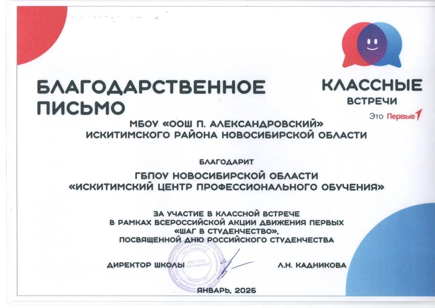 •нашему центру — укрепить связи со школами и внести вклад в профессиональное самоопределение молодёжи.Будем рады новым встречам и диалогу с учащимися и педагогами МБОУ «ООШ п. Александровский»!